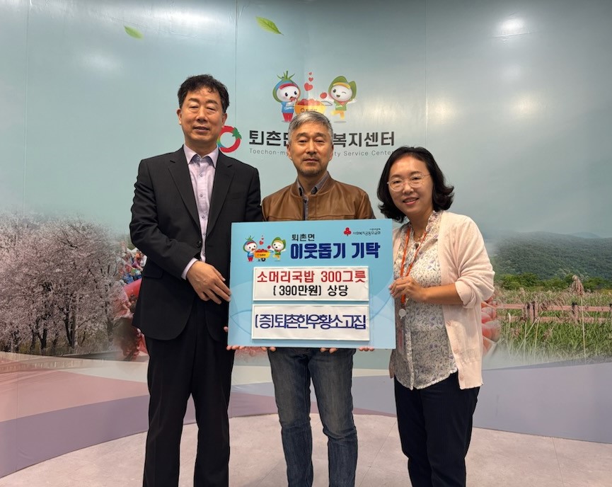광주시 퇴촌면에 소재한 퇴촌한우황소고집 강문선 대표는 지난 17일 퇴촌면 행정복지센터에 소머리국밥 쿠폰 300개(390만 원 상당)을 기탁했다. 이번 기탁은 지난 8월 개업 이후 지역사회 나눔 실천의 일환으로 마련됐으며 기탁된 국밥 쿠폰은 퇴촌면 내 저소득 가구, 홀몸 어르신 등 취약계층을 대상으로 한다. 올해 연말까지 배부된 쿠폰을 지참해 매장을 방문하면 따뜻한 국밥을 무료로 이용할 수 있다. 타 지점에서도 꾸준히 식사 나눔을 이어오고 있는 강 대표는 “추워지는 계절에 따뜻한 국밥 한 그릇이 어려운 이웃들에게 작은 힘이 되기를 바란다”며 “앞으로도 지역주민과 함께하는 나눔 활동을 지속해 나가겠다”고 밝혔다. 이에 대해 김성환 면장은 “취약계층을 위한 따뜻한 나눔에 진심으로 감사드리며 기탁된 국밥이 꼭 필요한 분들에게 전달될 수 있도록 하겠다”고 전했다. |