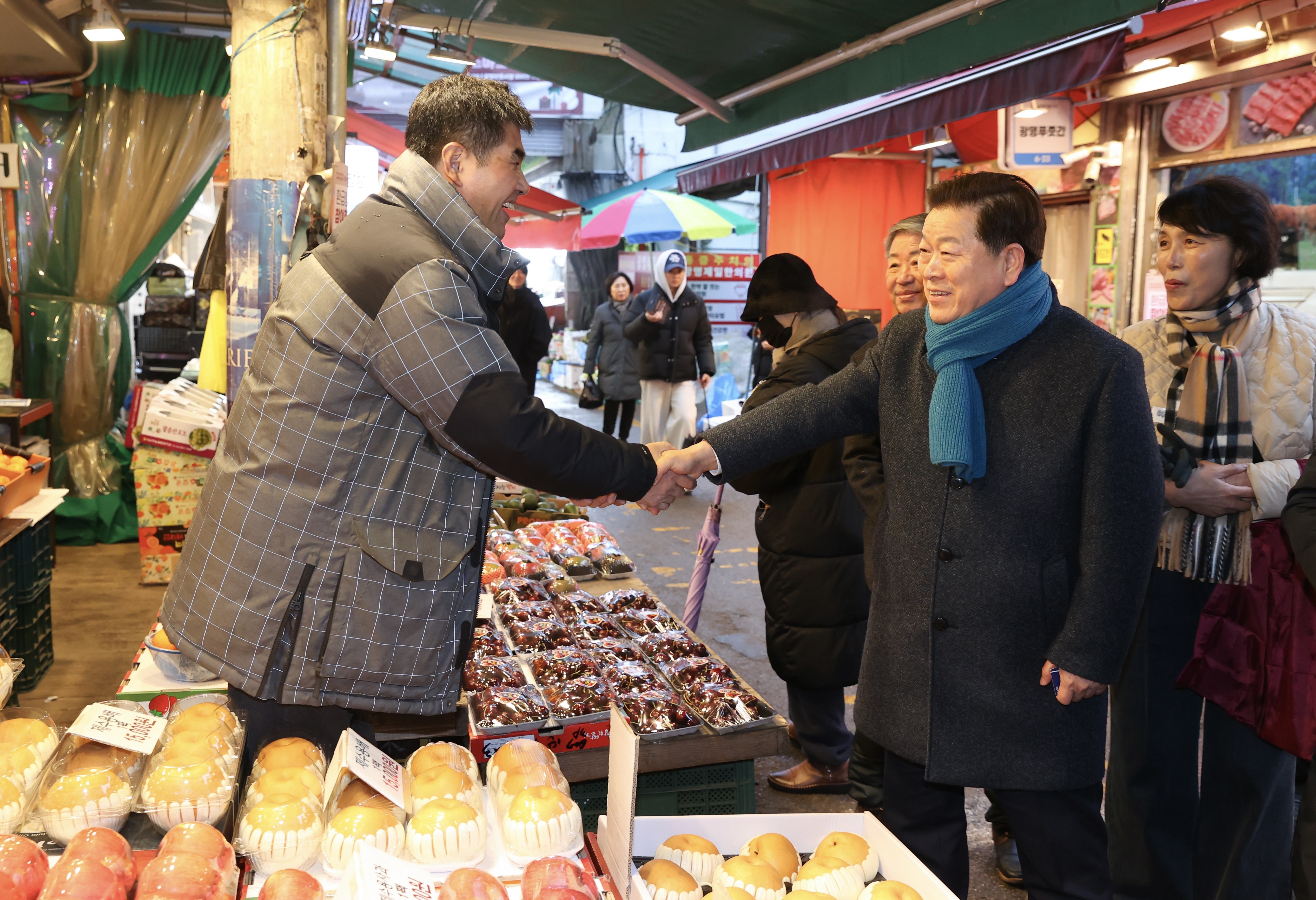 ๋ฐ• ์‹œ์žฅ์€ โ€œ์ „ํ†ต์‹œ์žฅ๊ณผ ์ด์›ƒ์ƒ๊ถŒ์€ ์ง€์—ญ ๊ฒฝ์ œ์˜ ๋ฟŒ๋ฆฌ์ธ ๋งŒํผ ์ƒ์ธ๊ณผ ์‹œ๋ฏผ์ด ์ƒ์ƒํ•˜๋Š” ํ™˜๊ฒฝ์„ ์กฐ์„ฑํ•˜๊ธฐ ์œ„ํ•ด ์ตœ์„ ์„ ๋‹คํ•˜๊ฒ ๋‹คโ€๋ฉฐ โ€œ์„ค์„ ๋งž์•„ ์‹œ์žฅ์„ ์ฐพ๋Š” ์‹œ๋ฏผ๋“ค์ด ์žฅ๋ฐ”๊ตฌ๋‹ˆ ๋ถ€๋‹ด์„ ๋œ๊ณ  ๋”ฐ๋œปํ•œ ๋ช…์ ˆ์„ ๋ณด๋‚ผ ์ˆ˜ ์žˆ๋„๋ก ๋ฌผ๊ฐ€์•ˆ์ •์—๋„ ๋…ธ๋ ฅํ•˜๊ฒ ๋‹คโ€๊ณ  ๋งํ–ˆ๋‹ค.